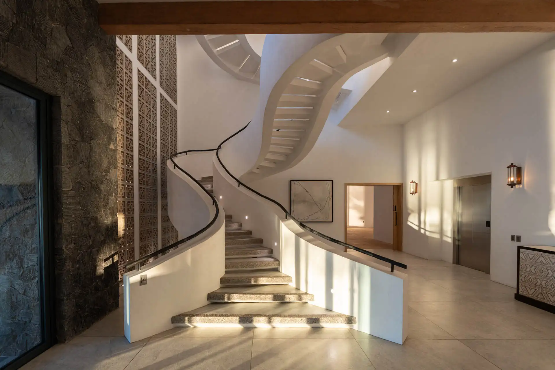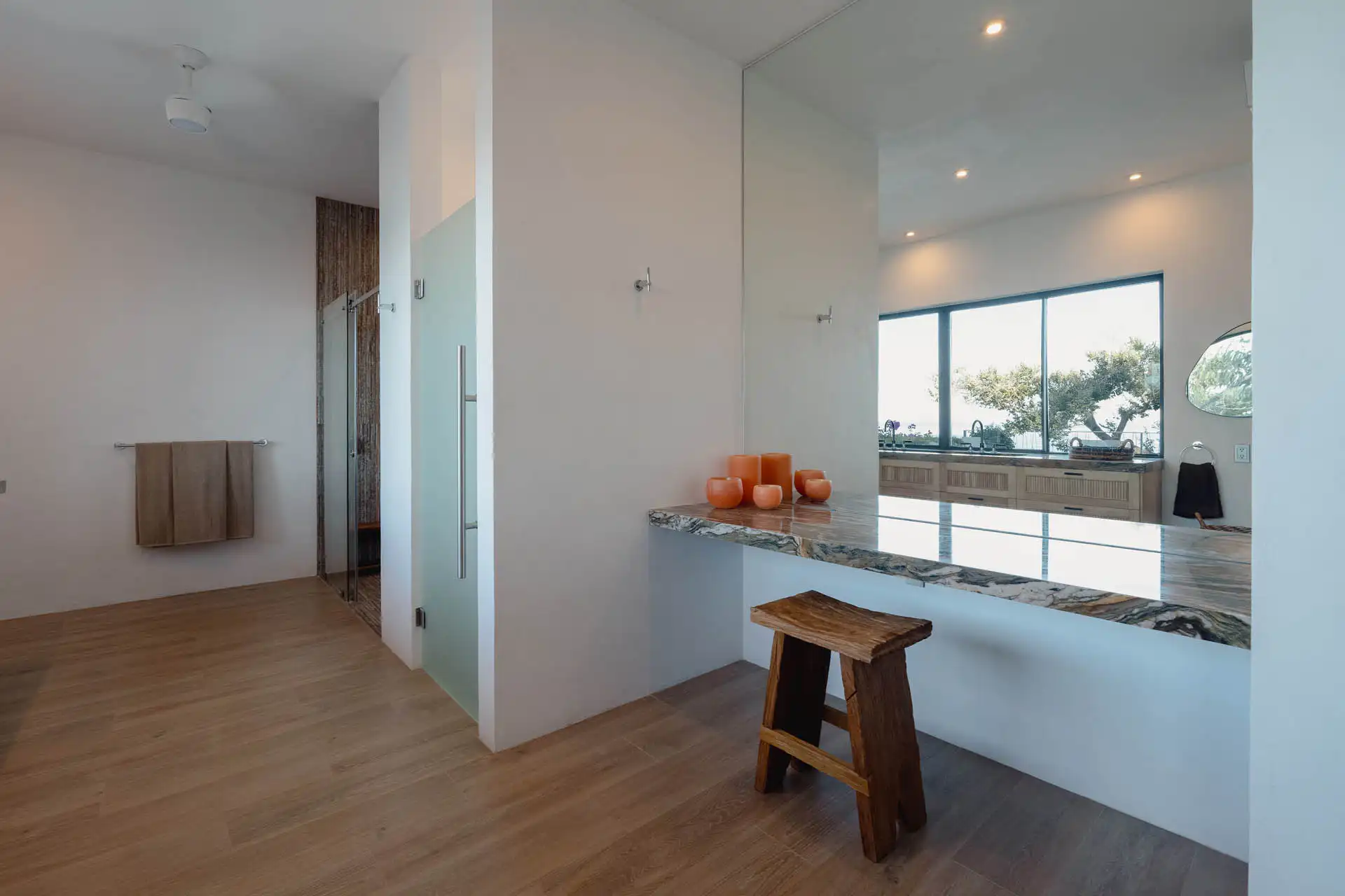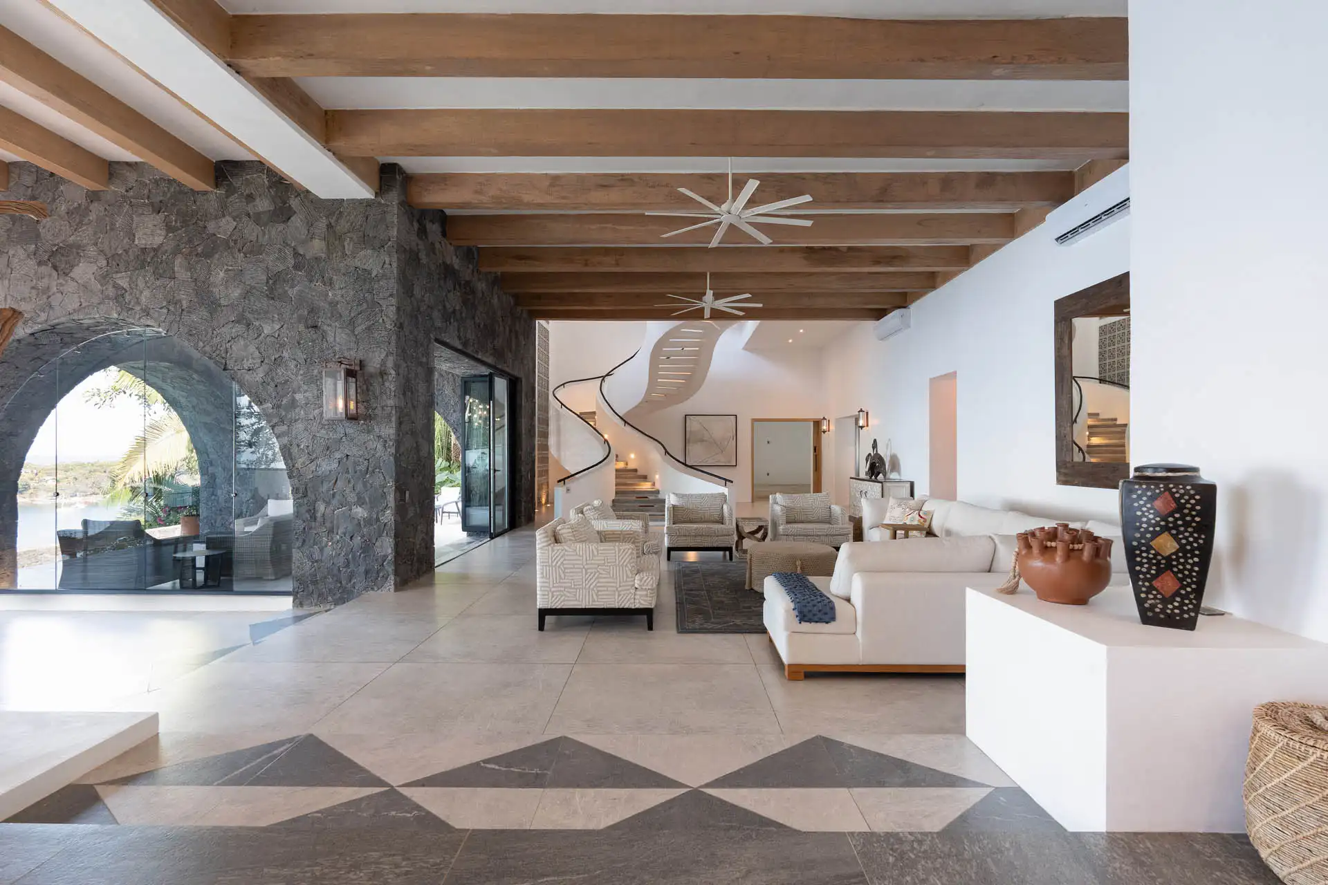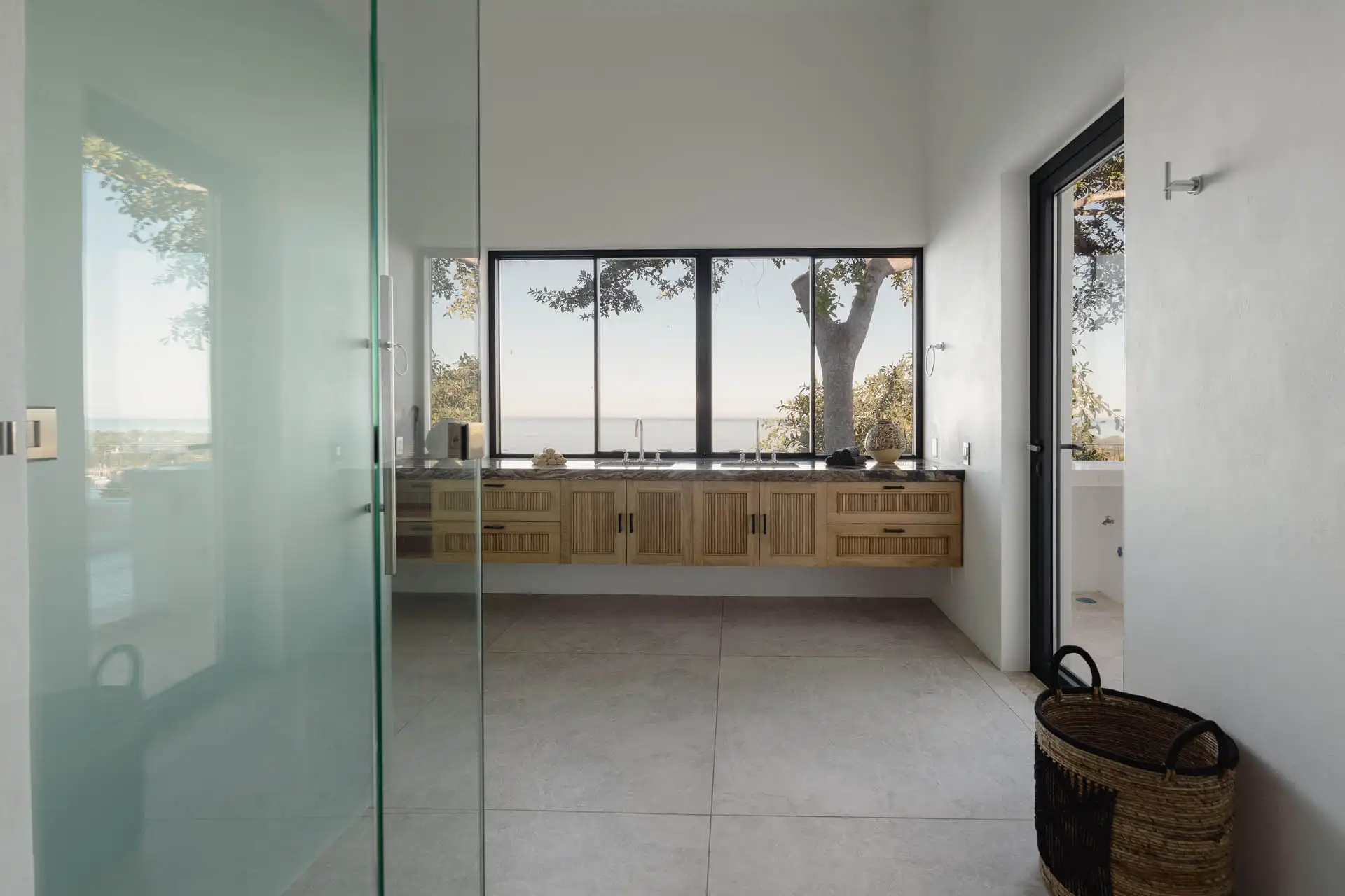 This casual yet contemporary residence boasts 11,000 square feet of interior space and an expansive 6,000 square feet of exceptional outdoor living creating a luxurious and relaxed lifestyle with ultimate privacy and solitude. Six beautiful ensuite bedrooms await, each offering full ocean views. Inside, discover winding staircases linking living spaces, a lounge, and a private office space. The home’s spacious family room flows into an open-concept kitchen, complete with designer cabinets, granite countertops, and top-of-the-line Wolf appliances, and includes dual 36″ Sub-Zero refrigerator and freezer units. The dining room provides breathtaking panoramic ocean views, perfect for intimate meals and large gatherings alike.